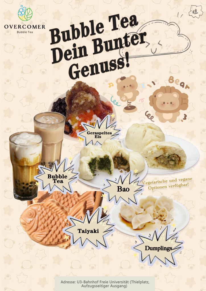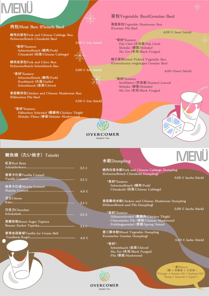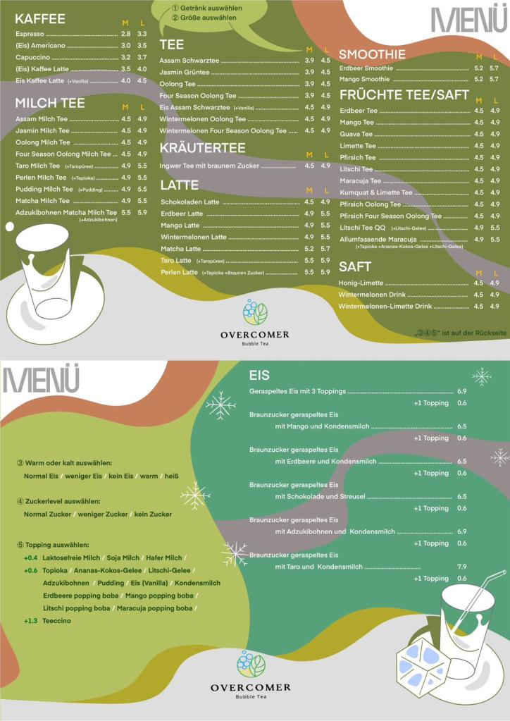 Bei Overcomer bieten wir leckere Getränke, köstliches Essen und herzlichen Service, um euch glücklich zu machen und bei Herausforderungen zu unterstützen. Wir hoffen, ihr kommt immer wieder vorbei!